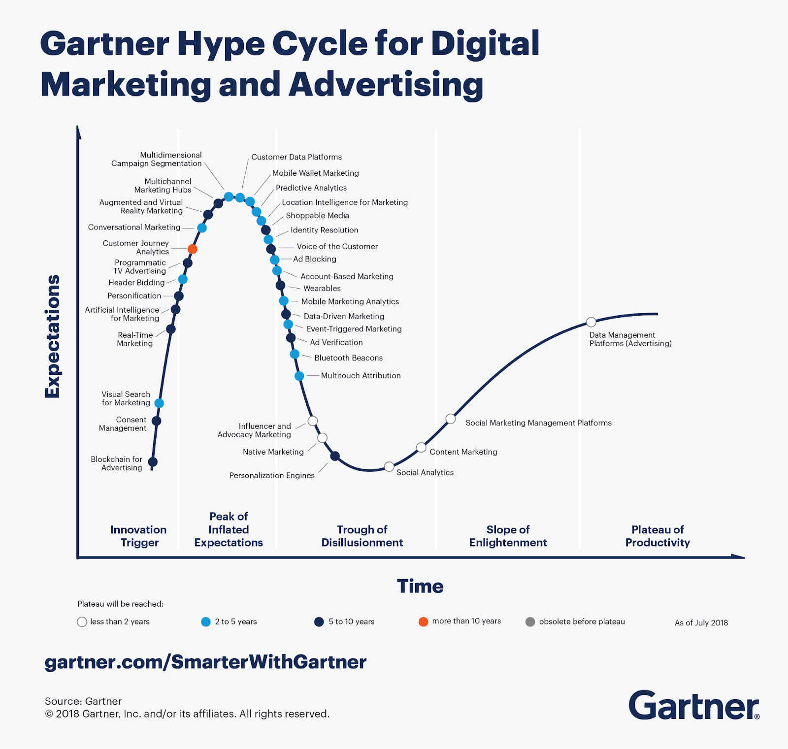 It’s almost certain that if you’re reading this post, you’ve seen something like the following image: a rendering of the famed Gartner Hype Cycle, a paradigm visualization popularized by Gartner, an IT advisory and research firm: